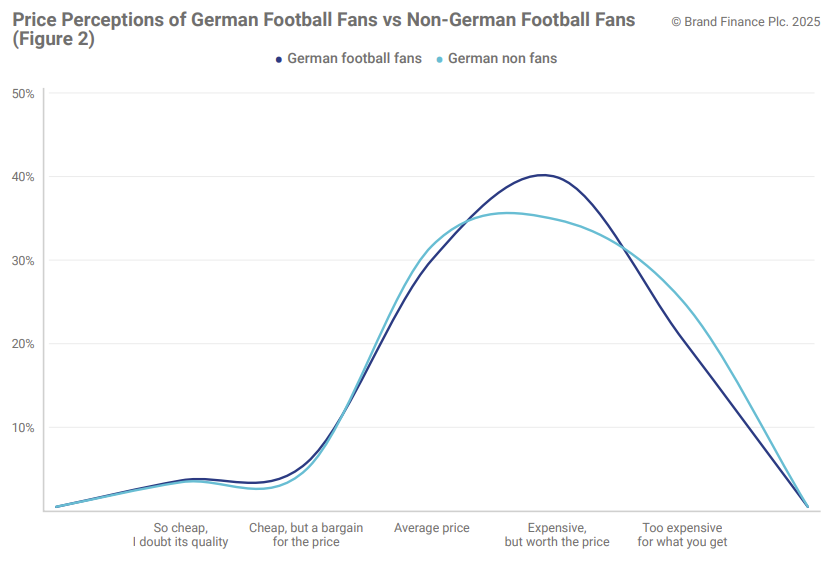 In addition to strengthening the sponsor’s brand funnel and brand perceptions, German football fans are more inclined to perceive the brand as delivering value for its premium pricing (Figure 2).