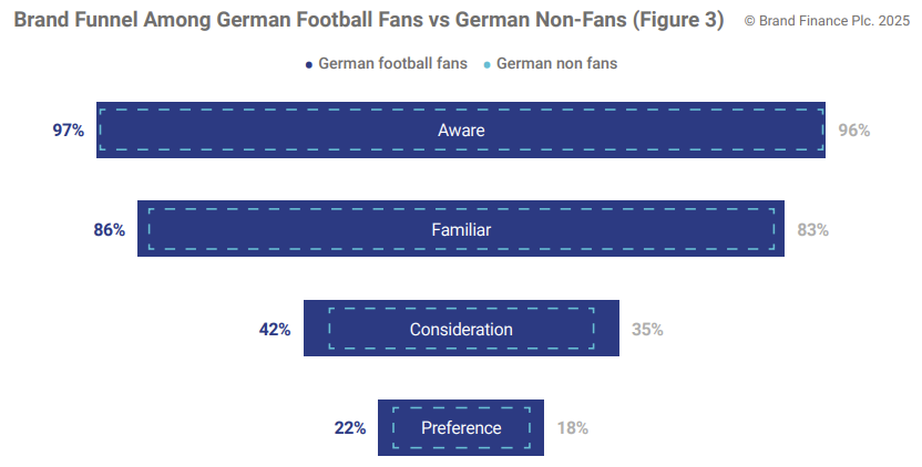 Brand Finance data indicates that, compared to non-football fans, football fans are more quickly increasing awareness and positive brand attributes, but they also represent a strategic audience segment. Their heightened responsiveness to the partnership makes them a valuable group to retain and nurture. Maintaining this momentum is key to deepening long-term brand equity and ensuring sustained impact from the association, as has been seen over the course of two years.
