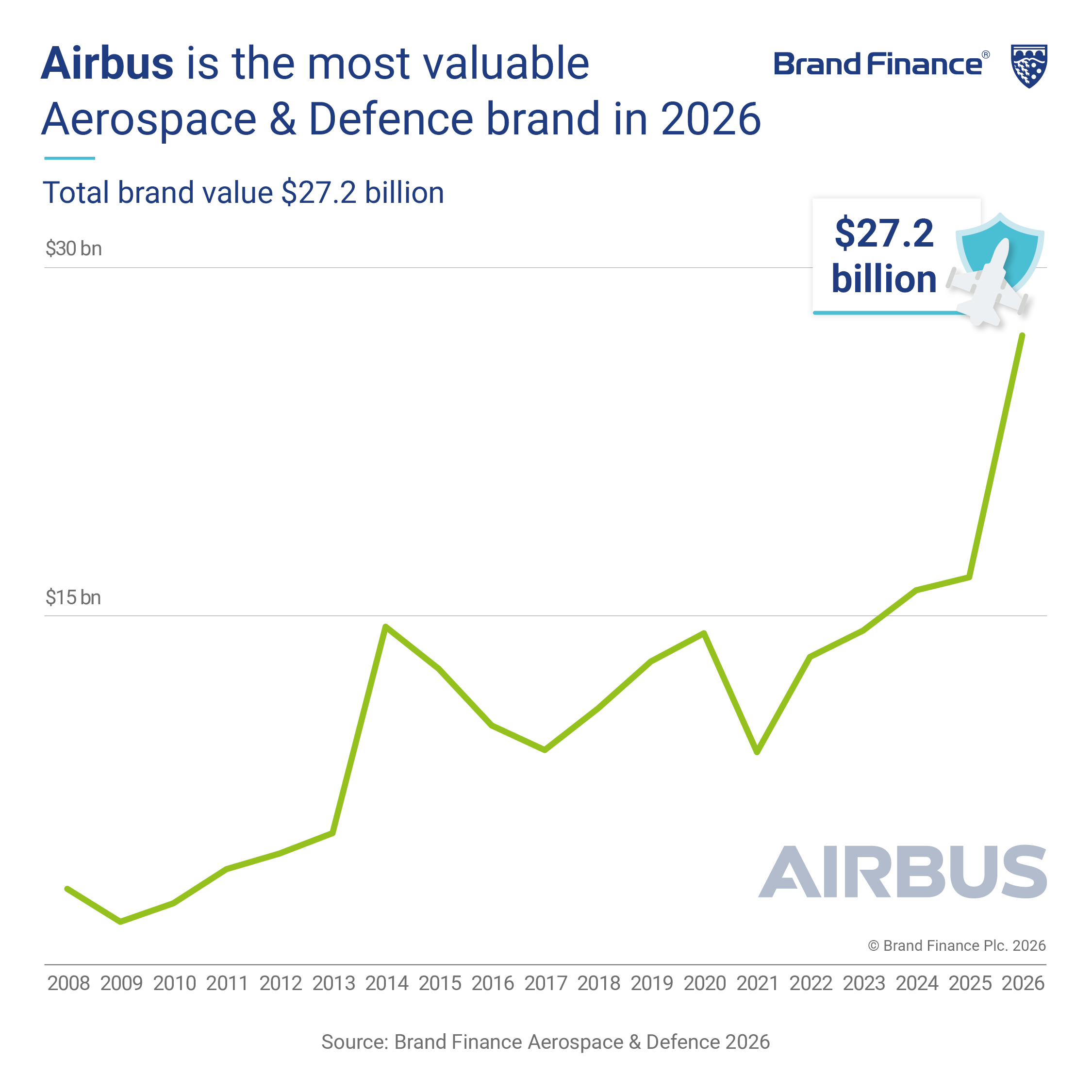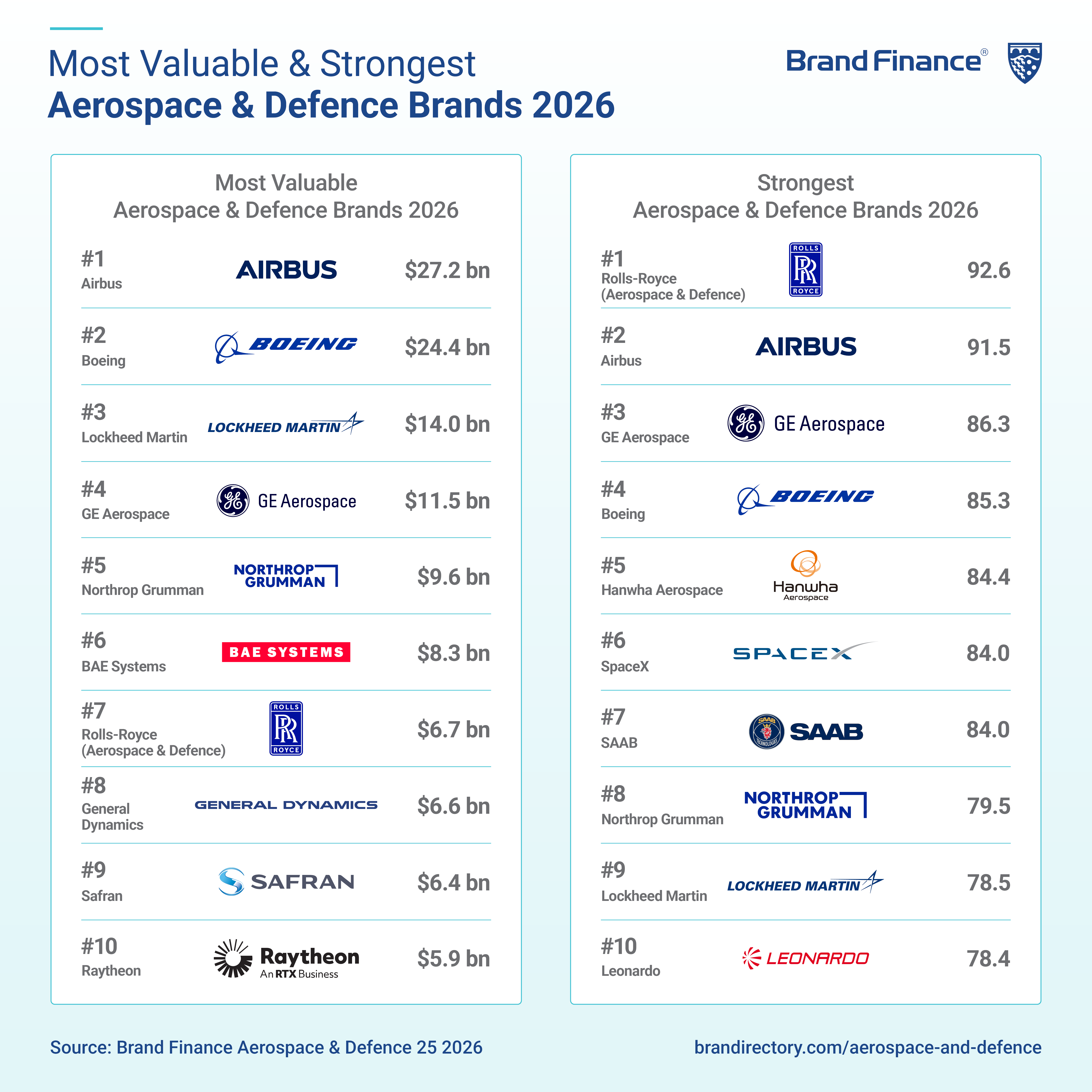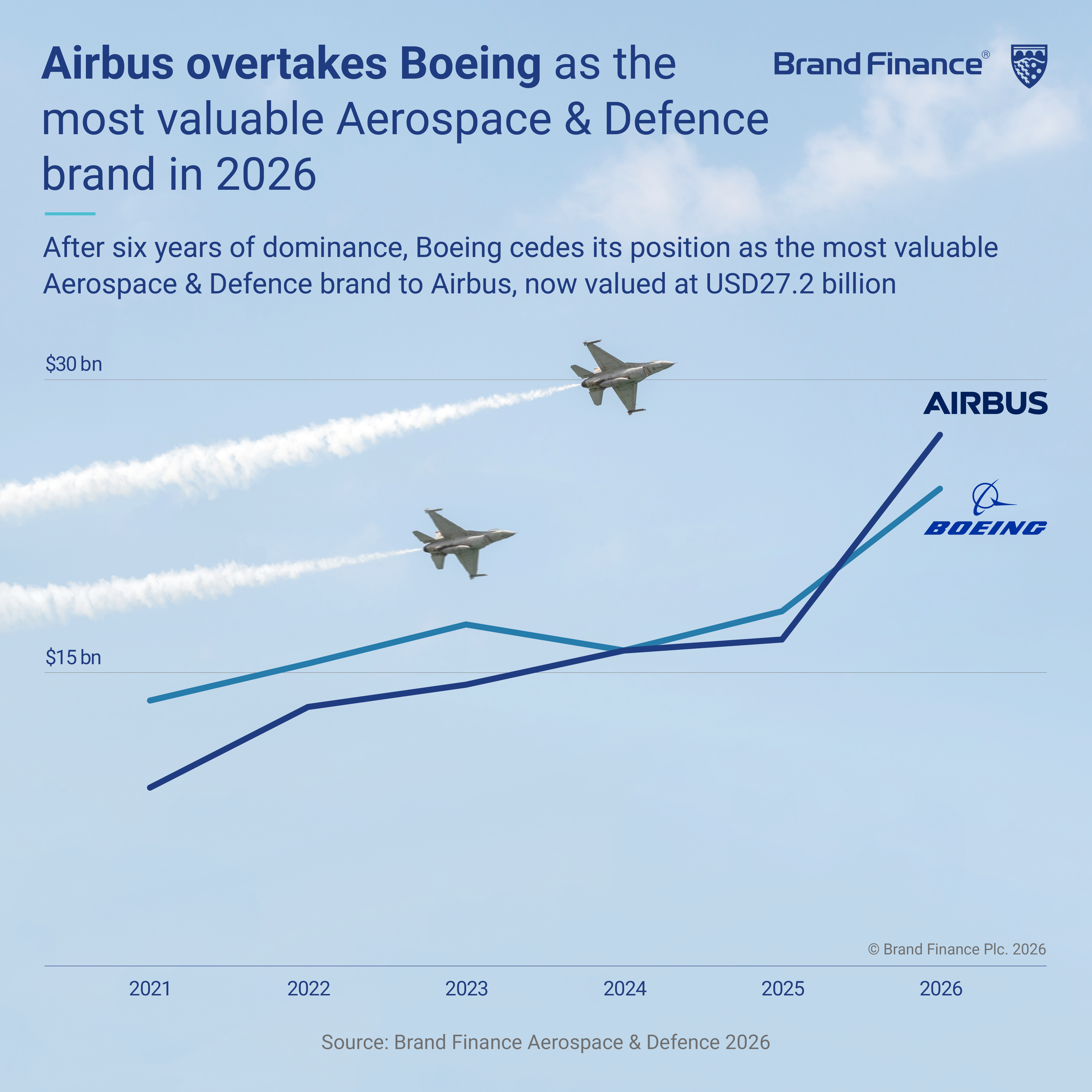 LONDON, 9 April 2026 – The global aerospace and defence sector enters 2026 with a 52% growth in total brand value, primarily driven by increased military demand according to the Aerospace & Defence 25 2026 report by Brand Finance, the world’s leading brand valuation consultancy.