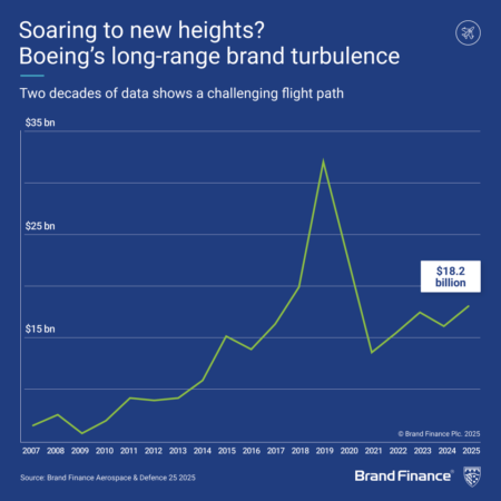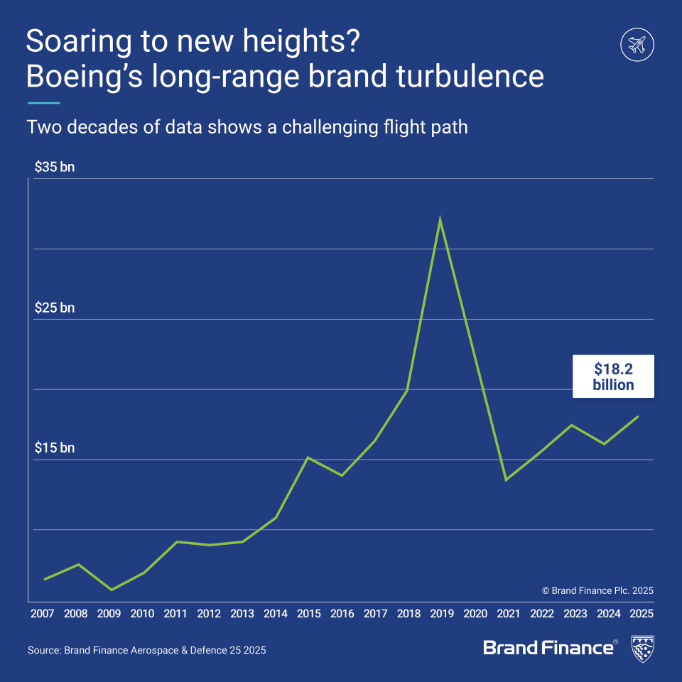 LONDON, 15 April 2025 – Boeing has retained its position as the world’s most valuable Aerospace & Defence brand for the tenth consecutive year, according to the latest report by Brand Finance, the world's leading brand valuation consultancy. Boeing’s brand value rose 12% year-on-year to USD18.2 billion, supported by the global recovery in commercial aviation and strong performance across its defence and space divisions.