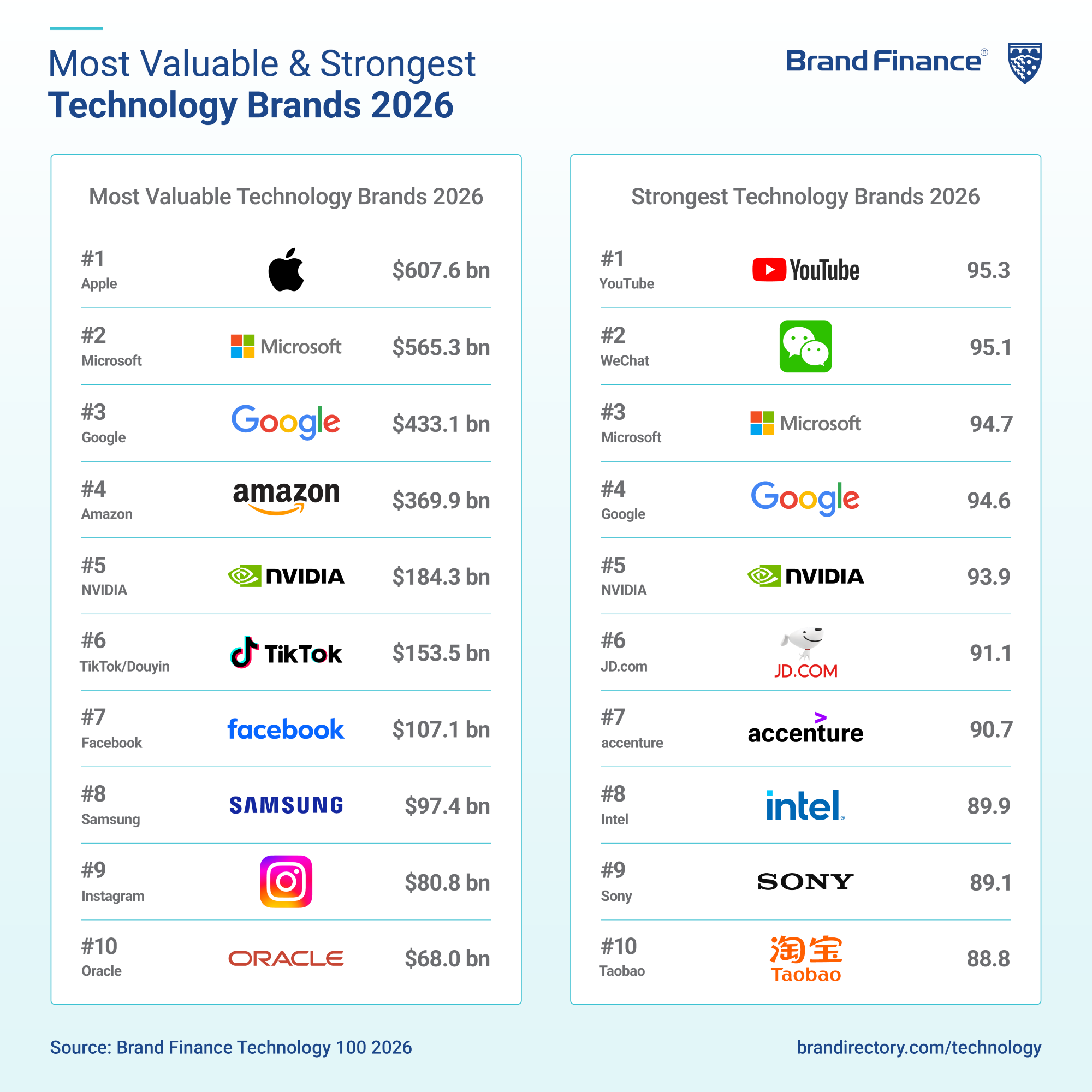 The Technology 100 2026 journal offers an overview of the world’s most valuable and strongest technology-driven brands by bringing together insights from multiple rankings such as the Semiconductors 30 and the Electronics and Appliances 50, which provides brand valuation of the top brands from their respective sectors.