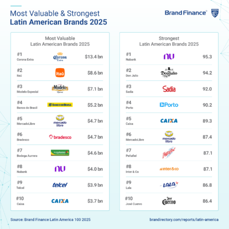 "O ranking deste ano reflete a contínua dominância do Brasil e do México no cenário de marcas da região — juntos, eles respondem por três quartos do valor total de marca. Também observamos uma concentração notável de valor em setores-chave: o setor bancário lidera com ampla margem, mas cervejas e varejo geram valor muito acima da média em relação ao número de marcas representadas. É um mercado dinâmico, moldado tanto por marcas consolidadas quanto por novos desafiantes em rápido crescimento na região."