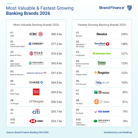 Brand Finance’s Banking 500 2026 journal reveals Singapore ranks 9th globally by total brand value at $33 billion