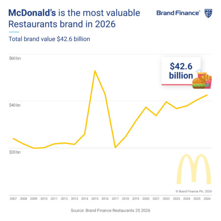 In 2026, the global restaurants sector continues to grow in value, supported by store expansions and the normalisation of takeout, delivery, and quick-service dining. Since the inaugural Brand Finance Restaurants 25 report in 2015, the combined brand value of the Top 10 has increased by around 20%, even as brand strength has come under increasing pressure.