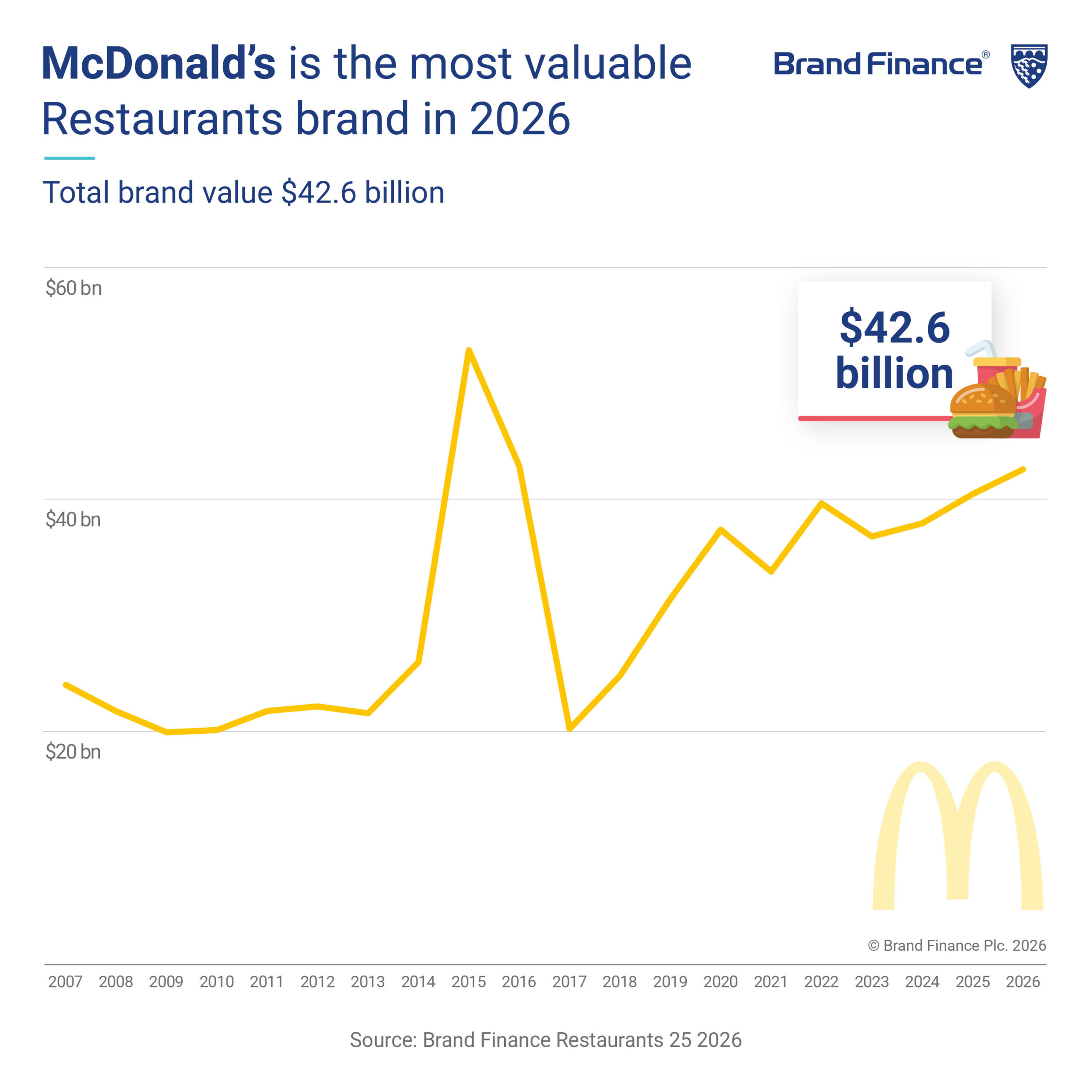 LONDON, 5 February 2026 – The world’s top 25 restaurant brands are now worth a combined USD190.1 billion, marking a new high for the sector, according to a new report from Brand Finance, the world's leading brand valuation consultancy.