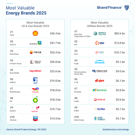 Brand Finance’s inaugural Energy 100 report ranks the most valuable and strongest oil & gas as well as utility brands for 2025